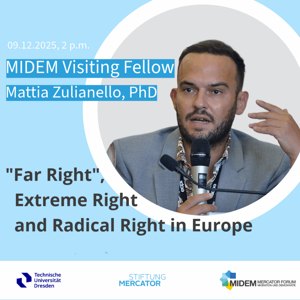 In his lecture MIDEM Visiting Fellow Mattia Zulianello argues, that the label „far right“ overlooks the fundamental ideological distinctions between the extreme right and the radical right. The anti-democratic tendencies of the extreme right are not its defining feature, but rather a consequence of its core ideological commitment: the belief in the necessity of an […]