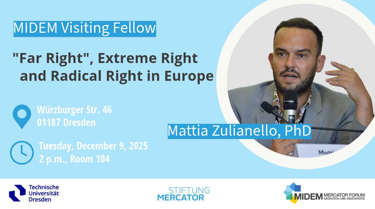 In his lecture MIDEM Visiting Fellow Mattia Zulianello argues, that the label „far right“ overlooks the fundamental ideological distinctions between the extreme right and the radical right. The anti-democratic tendencies of the extreme right are not its defining feature, but rather a consequence of its core ideological commitment: the belief in the necessity of an eschatological palingenesis of the nation. This dimension is often overlooked by proponents of the „far right“ label. However, eschatological palingenesis is central to understanding the extreme right’s identity and worldview, bringing with it corollaries such as elitism, anti-democratic attitudes, revolutionary ambition, and the justification of political violence. Therefore, it is crucial to distinguish clearly between the radical right and the extreme right, both conceptually and empirically. More precise terms should be used whenever possible, rather than resorting to the vague umbrella term „far right.“