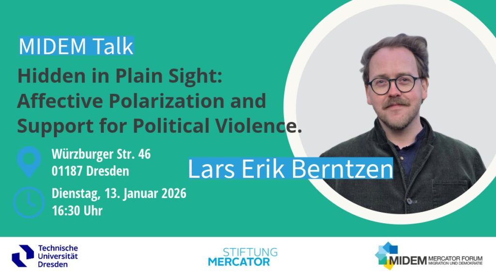 Affective polarization is often cited as a key driver of heightened partisan hostility and an increased willingness to engage in political violence. However, limited research exploring this relationship reveals an intriguing paradox: affective polarisation appears to be negatively correlated with support for political violence. What explains this surprising trend? In this talk, Lars Erik Berntzen will address this issue, drawing on new comparative survey data from ten democracies. His presentation provides a comprehensive analysis of the intricate relationship between affective polarization and political violence revealing the underlying mechanisms and dynamics that underpin these phenomena.